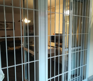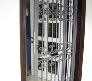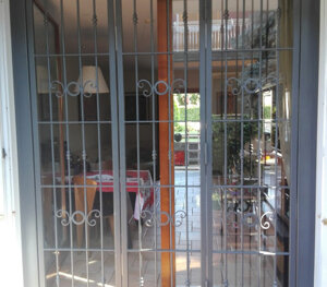TELAIO E ANTE TUBOLARE 40 X 30, QUADRO 14 X 14 PIENO,TONDO DIAM. 16MM LAMIERE SP.30/10 PER PROTEZIONE SERRATURE, SERRATURE BASCULANTE A TRE PUNTI DI CHIUSURA INCASSATA NEL TUBOLARE, ASTE DI CHIUSURA INFERIORI/SUPERIORI DIAM. 12MM PIENO E ZINCATO, CILINDRO EUROPEO CON CHIAVI UNIFICATE, CONTROPIASTRE DI CHIUSURA REGOLABILI ZINCATE, VERNICIATURA A FORNO PIU’ FONDO PRIMER IN POLVERE DI POLIESTERE PER ESTERNO SPESSORE 120 MICRON. POSSIBILITA’ DI INSERIMENTO CRICCHETTI AD UNGHIA INCASSATI CON PALETTI DI CHIUSURA PER LE ANTE DI SERVIZIO, BORDINI DI RIFINITURA ESTERNI, PERNI ANTISTRAPPO, QUADRI MARTELLATI. POSSIBILITA' DI FORNITURA ED INSTALLAZIONE ZANZARIERE VERTICALI, SCORREVOLI LATERALI ED A PANNELLO .INOLTRE IL NS. MODELLO MINI CI CONSENTE DI INSTALLARE L' INFERRIATA E LA ZANZARIERA IN UNO SPAZIO DI SOLI 65 mm